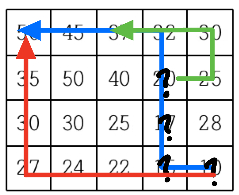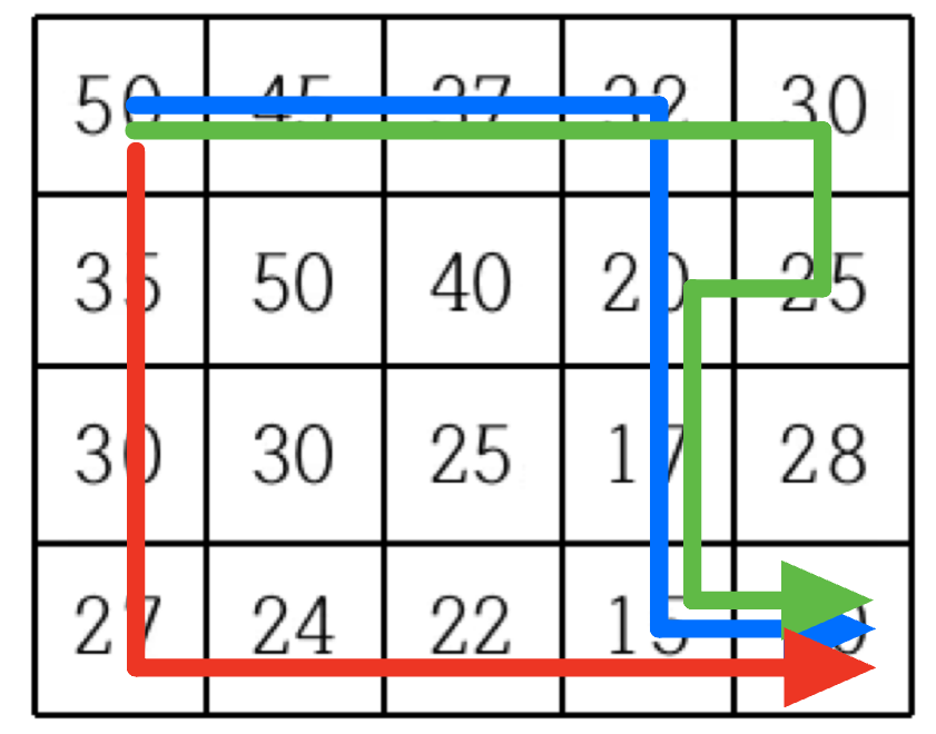 그리고 내리막 길로 이동한다는 규칙을 만족하면서 목적지로 도착할 수 있습니다.