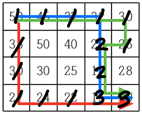 한 번 각 경로가 지나오는 경로에 숫자를 표기해 보겠습니다.