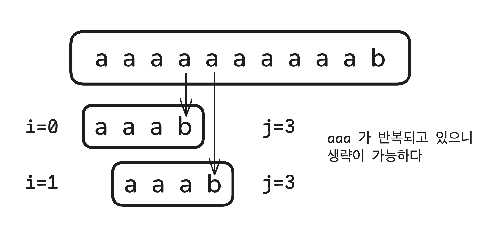 다음으로 패턴 $aaab$의 두 번째 문자 ($j=1$)를 비교해봅시다.