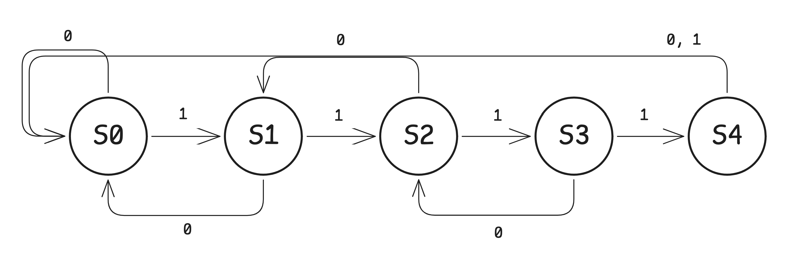 각각의 state 마다 입력에 따른 유일한 상태 변화가 존재하기 때문에 다음과 같은 다이어그램으로 표현할 수 있다는 것이죠.